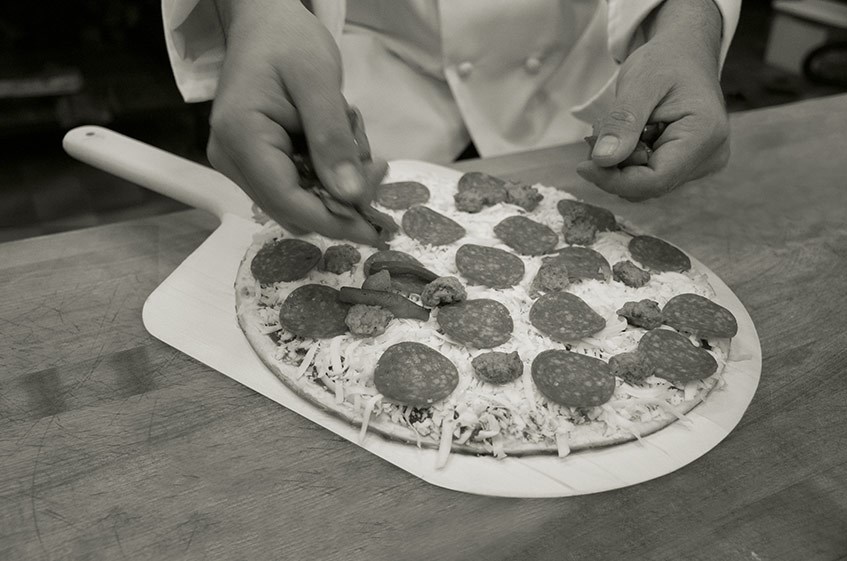 CRUST (ENRICHED WHEAT FLOUR [WHEAT FLOUR, NIACIN, FERROUS SULFATE, THIAMINE MONONITRATE, RIBOFLAVIN, FOLIC ACID, ENZYME], WATER, SOYBEAN OIL, CONTAINS 2% OR LESS OF: YEAST, VINEGAR, SUGAR, SALT, CULTURED WHEY, WHEY, DOUGH CONDITIONER [WHEAT FLOUR, ASCORBIC ACID, ENZYMES], SOY LECITHIN [PROCESSING AID]), CHEESES (LOW MOISTURE PART SKIM MOZZARELLA CHEESE [PASTEURIZED PART SKIM MILK, CHEESE CULTURES, SALT, ENZYMES], PROVOLONE CHEESE [PASTEURIZED COW'S MILK, CHEESE CULTURES, SALT, ENZYMES], PARMESAN CHEESE [PASTEURIZED COW'S MILK, CHEESE CULTURES, SALT, ENZYMES], ROMANO CHEESE [PASTEURIZED COW'S MILK, CHEESE CULTURES, SALT, ENZYMES], ASIAGO CHEESE [PASTEURIZED COW'S MILK, CHEESE CULTURES, SALT, ENZYMES]), ITALIAN SAUSAGE (PORK, PORK FAT, SPICES, DEXTROSE, SALT, FLAVORINGS, SODIUM PHOSPHATES, YEAST EXTRACT), SAUCE (WATER, TOMATOES, SOYBEAN OIL, SUGAR, SALT, SPICES, GARLIC POWDER), DICED TOMATOES (TOMATOES, TOMATO JUICE, CITRIC ACID, CALCIUM CHLORIDE), GARLIC POWDER, BASIL, OREGANO.