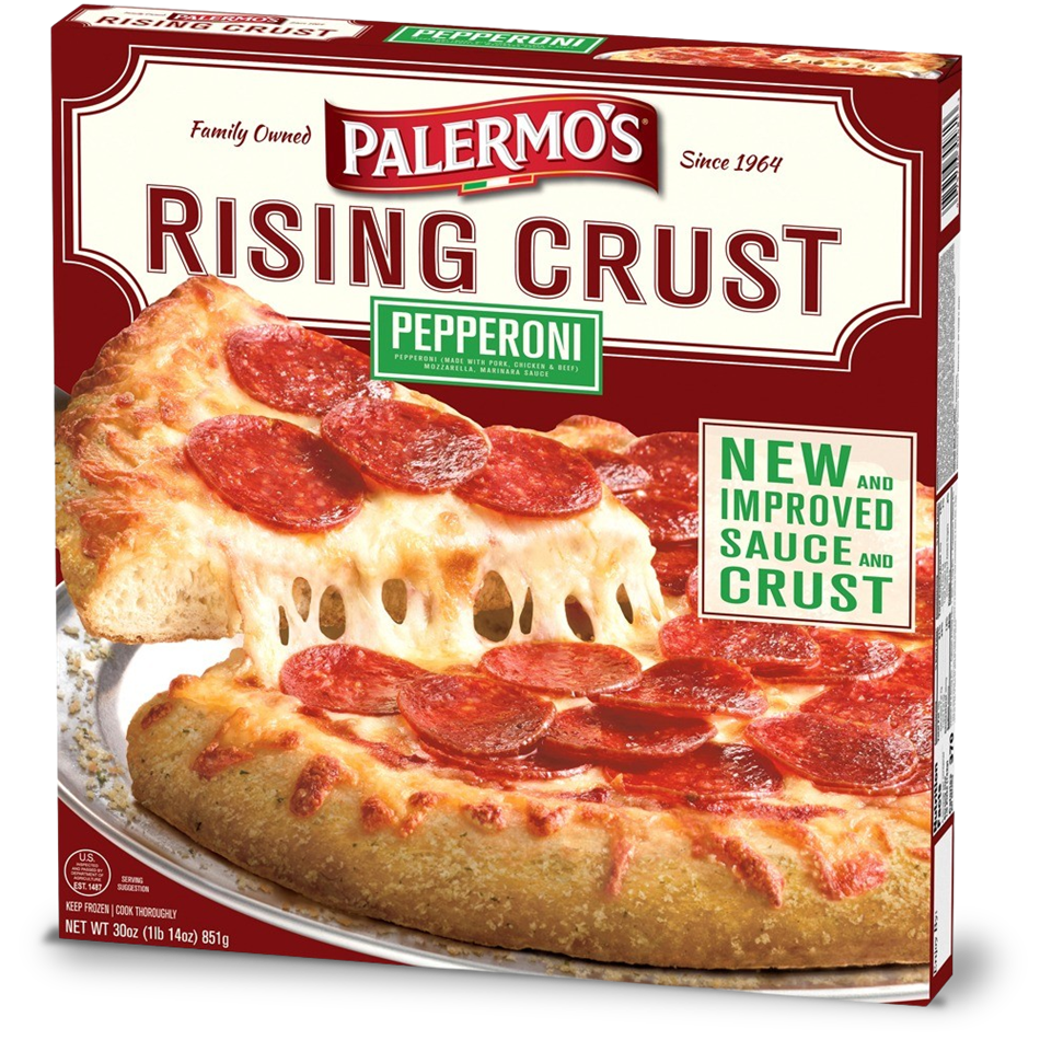INGREDIENTS: CRUST (ENRICHED WHEAT FLOUR [WHEAT FLOUR, NIACIN, REDUCED IRON, THIAMINE MONONITRATE, RIBOFLAVIN, FOLIC ACID], WATER, SOYBEAN OIL, SUGAR, YEAST, CONTAINS 2% OR LESS OF THE FOLLOWING: LEAVENING [SODIUM ALUMINUM PHOSPHATE, SODIUM BICARBONATE],SALT, ENZYME, ASCORBIC ACID, WHEAT STARCH, DEGERMED CORN MEAL, SOY LECITHIN), WHOLE MILK MOZZARELLA CHEESE (PASTEURIZED MILK, CHEESE CULTURES, SALT, ENZYMES), SAUCE (WATER, TOMATOES, SEASONING [SUGAR, SALT, SPICES, ONION POWDER, XANTHAN GUM, GARLIC POWDER]), PEPPERONI MADE WITH PORK, CHICKEN AND BEEF (PORK, MECHANICALLY SEPARATED CHICKEN, BEEF, SALT, SPICES, DEXTROSE, LACTIC ACID STARTER CULTURE, OLEORESIN OF PAPRIKA, SODIUM ASCORBATE, FLAVORING, SODIUM NITRITE, BHA, BHT, CITRIC ACID), CHEESE BLEND (PARMESAN CHEESE [PASTEURIZED MILK, CHEESE CULTURES, SALT, RENNET], ROMANO CHEESE [PASTEURIZED MILK, CHEESE CULTURES, SALT, RENNET], ASIAGO CHEESE [PASTEURIZED MILK, CHEESE CULTURES, SALT, RENNET]). CONTAINS MILK, SOY, WHEAT. CONTAINS BIOENGINEERED FOOD INGREDIENTS.